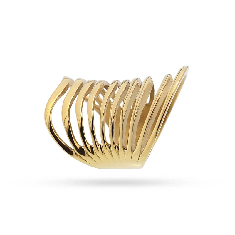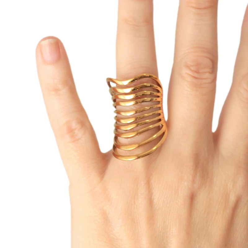 Anillo súper ancho BOHO LINES gold. Joyas de acero quirúrgico de Anartxy