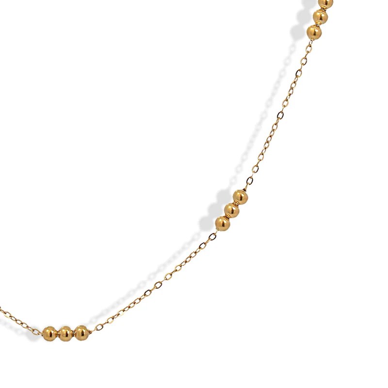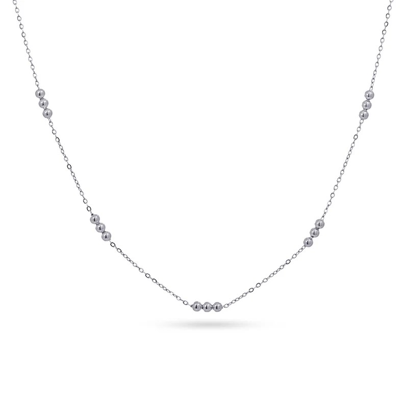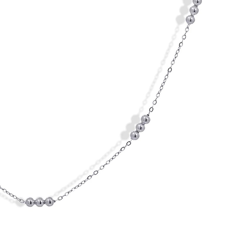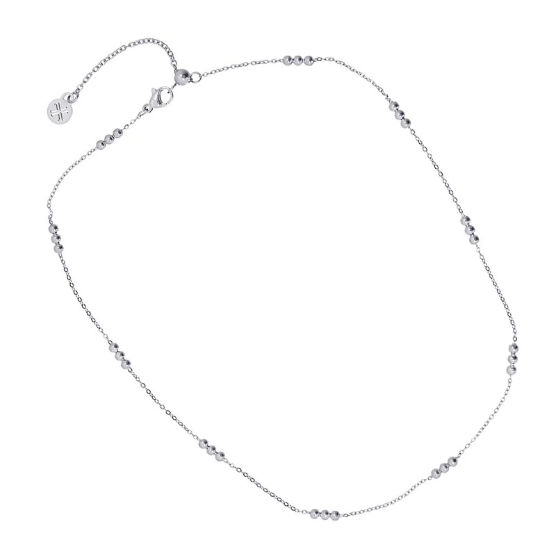 Collar de acero quirúrgico plateado formado por una cadenas fina y 3 bolitas juntas alternas. El cierre es un mosquetón y lleva incorporado un alargador. También está disponible la pulsera a juego. Combínalo con cualquier collar de la colección ESSENTIALS.