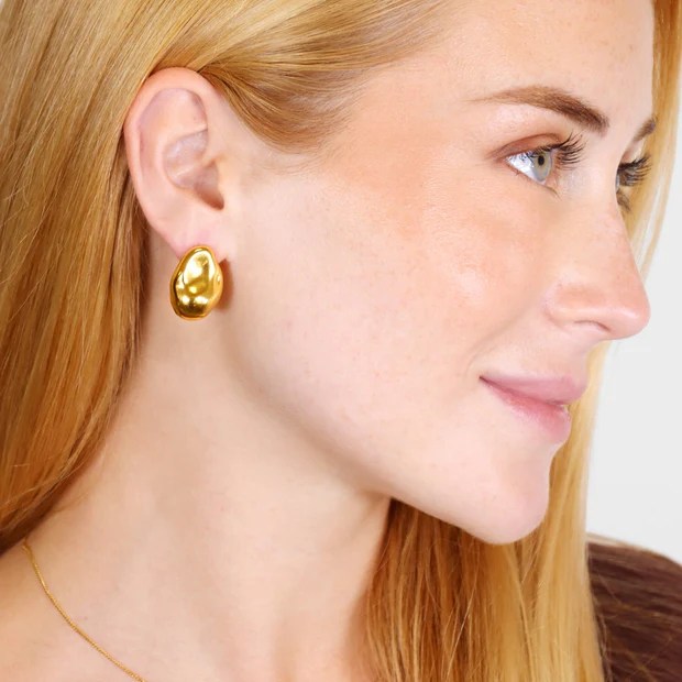 Pendientes de acero dorado con forma de gota con acabado martelado, sencillas y muy elegantes. El cierre es un tornillo de presión. Es el pendiente de moda, perfectas para lucir a diario.